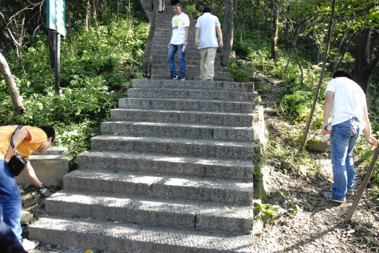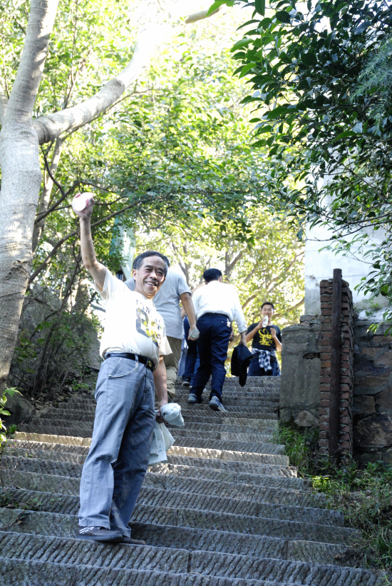 院工會組織的這次重陽登山活動(dòng),除了傳承中華文明禮俗,豐富員工的精神生活外,還與響應(yīng)南京市政府倡導(dǎo)的“保護(hù)綠肺,造福南京”的紫金山環(huán)保公益活動(dòng)結(jié)合起來,以實(shí)際行動(dòng)加入到保護(hù)紫金山生態(tài)、愛護(hù)自然環(huán)境的志愿者行動(dòng)中來,因此,登山活動(dòng)所賦予的新的意義激發(fā)了員工們的參與熱情。所以,在崎嶇蜿蜒的登山步道上,兩側(cè)的密林中,蘇建科志愿者們一面奮力爬山,一面不忘細(xì)心地觀察路上的環(huán)境,一發(fā)現(xiàn)煙頭、紙屑、飲料瓶罐等廢棄物,都會自覺撿起來丟進(jìn)路旁的垃圾桶。漫長高遠(yuǎn)的山道上,但見員工們因體能狀態(tài)而逐漸分化為一撥撥松散的小團(tuán)隊(duì),在疲憊的步履中頑強(qiáng)前行,并不時(shí)能看見他們俯拾垃圾的動(dòng)人身影。他們所過之處像一把篦子,把長達(dá)1861級的登山階梯“梳理”得“一塵不染”。