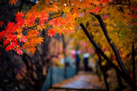 棲霞山的楓葉說:秋天是橘紅,我就是被秋風(fēng)吹紅的。