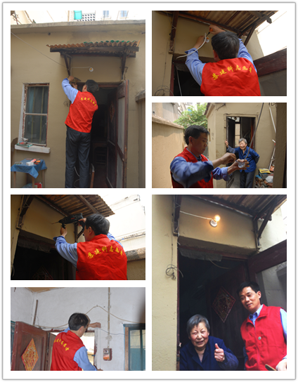 五月的一天中午,我院志愿者、電工徐淮庚忙完了手中的工作后,顧不得吃飯便提著工具和電料匆匆來到社區譚奶奶家中,他要為這位孤寡老人門前裝一盞路燈。