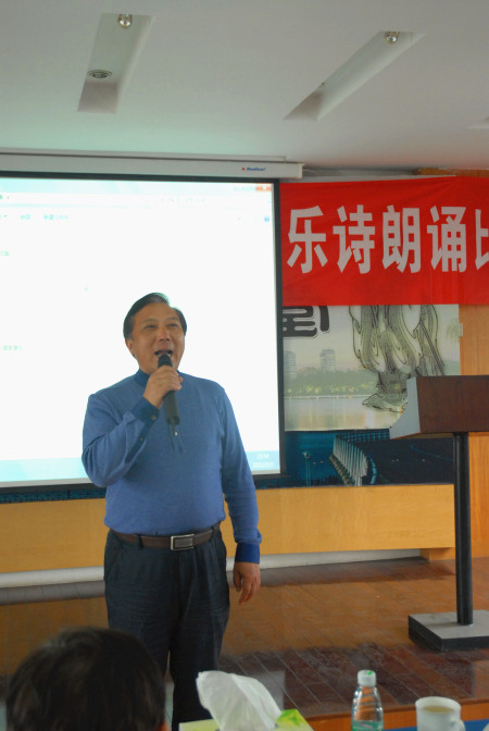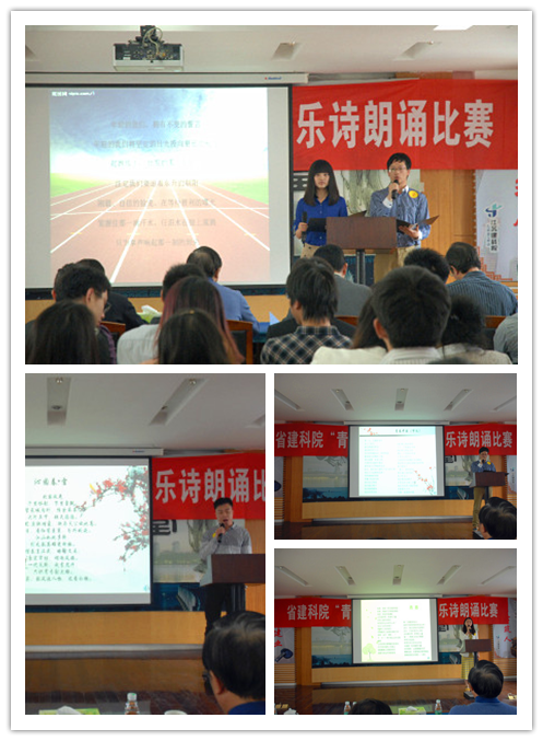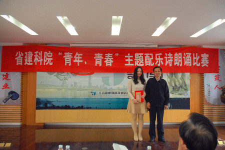 下午2:30,比賽正式開始,第一輪第一個上場的是東方公司的王聃,她朗誦的詩歌是席慕容的《青春》,這是一首對青春的短暫無限慨嘆,對青春的美好無比懷戀的經典詩作,雖然有些許緊張,但王聃低沉含蓄的聲音很快將大家帶入那種甜蜜而憂傷的詩境中去,她的表現贏得全場熱烈的掌聲,同時也獲得評委的認可,拿到55.9分的好成績(第一輪總分60分)。第二個上場的是監理公司的徐昊,一個帥氣而不失可愛的小伙子,面對壓力他絲毫不受影響,將一首《天那邊》誦讀得如癡如醉,如夢如幻,配合他精心制作的視頻文件,讓人仿佛置身于那一片深邃純凈的星空,原來青春可以是甜蜜的憂傷,也可以是寧靜的思索,最終徐昊獲得56.1分。