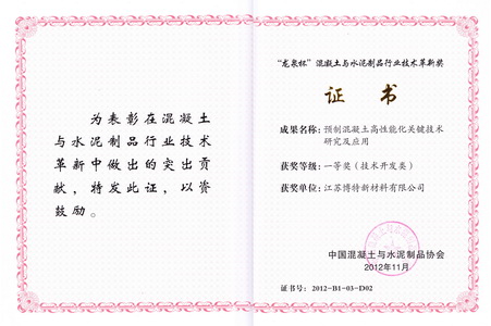 12月7日-9日,中國混凝土與水泥制品協會2012年會在廣西南寧隆重召開,副院長、博特公司總經理劉加平率隊參加了會議。本次年會圍繞主題“創新引領綠色發展逆勢而上”展開討論。會議內容包含了第二屆混凝土與水泥制品企業總工程師論壇,大型水泥企業發展商品混凝土高層研討會,中國混凝土與水泥制品協會預拌混凝土分會理事會暨管理經驗交流大會等多個主題,是CCPA的年度盛會。會上,劉加平副院長做了《功能型聚羧酸外加劑在混凝土預制構件中的應用》專題報告。報告深入分析了混凝土預制構件的現狀和發展趨勢,全面闡述了功能型聚羧酸外加劑在預制構件低能耗生產、自動化生產以及耐久性提升等方面的重要作用,并詳細介紹了博特公司在相關產品和技術方面的研究、開發及推廣應用情況,報告在與會代表中引起很大反響。本屆年會還頒發了2012“龍泉杯”混凝土與水泥制品行業技術革新獎,博特公司主持完成的預制混凝土高性能化關鍵技術及應用獲得了一等獎,同時博特公司還獲得了“2012年度用戶推薦中國混凝土外加劑品牌企業”稱號。