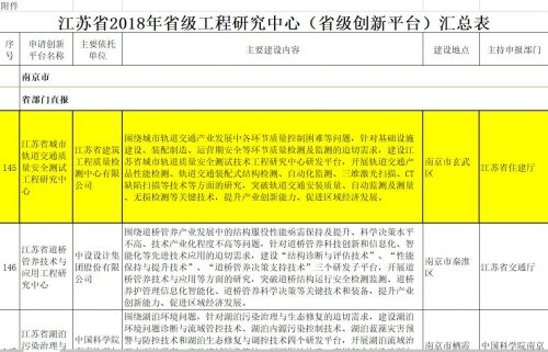 “江蘇省2018年省級工程研究中心(省級創新平臺)”是江蘇省發展改革委組織的具有技術領先優勢的高成長型企業、院校和科研院所等建設的研究創新開發實體,是江蘇省創新體系的重要組成部分。