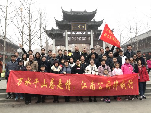 十二月伊始,秋意正濃,棲霞山楓葉正當紅。攜著濃濃的秋意,江南公司工會和團支部組織員工一同秋游棲霞山。胡明亮董事長帶領員工和部分家屬一行共四十多人參加了此次活動。告別了城市的喧囂,上午9點我們帶著喜悅的心情在景區大門口集合,并在牌坊下合影留念,隨后便開始了徒步登山,向山中楓葉最紅處進發。棲霞山又名攝山,位于南京城東北22公里處的棲霞鎮,有東、西、中三峰,山上楓林、烏桕林、櫸木連綿成片,是中國四大賞葉勝地之一,“棲霞丹楓”更是著名的金陵十景之一。