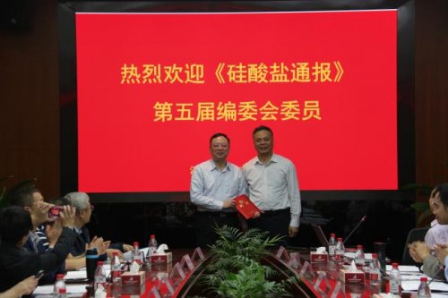 會議提名由繆昌文院士任主編、晶體院信息中心主任彭珍珍教授級高工任執行主編,組成《硅酸鹽通報》第五屆編委會。李勇院長為繆昌文院士及全體編委頒發了聘書并合影留念。