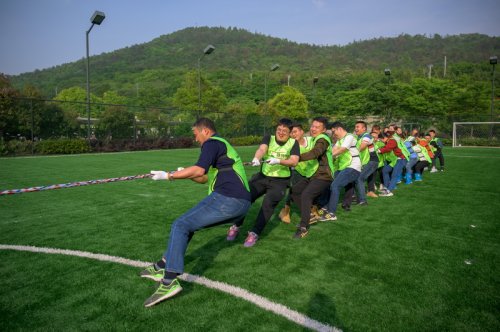 在拔河比賽中,比賽雙方橙隊(duì)和綠隊(duì)分列兩側(cè)、交錯而站,大家握緊麻繩、擺好姿勢、蓄勢待發(fā)。隨著裁判一聲令下,比賽正式開始,選手們使出渾身解數(shù),雙腳如吸盤一般蹬著地面,身子用力向后傾斜,伴隨著有節(jié)奏的號子聲,拼命地向自己隊(duì)伍的方向拽繩子,在激烈的“三局兩勝”賽制下,最終綠隊(duì)拔得頭籌。你方唱罷我登場,在鍛煉大家反應(yīng)速度與短跑爆發(fā)力的貼人游戲中,兩支隊(duì)伍不斷變化戰(zhàn)術(shù)、隊(duì)內(nèi)成員默契配合,一番角逐后,橙隊(duì)扳回一局,完美收官。